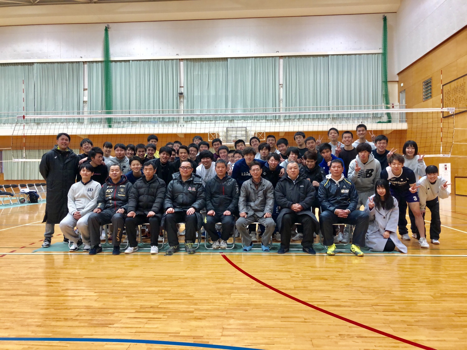 初打会のお知らせ コラム 平成最後の初打会を1月3日(木)13:00より開催します。 本年度は,13年ぶりのインターハイ出場,11月に開催されました 鹿児島市大会の優勝と,輝かしい歴史を築いてくれました 現役選手と対戦してみませんか。目の前で観戦してみませんか。 また,バレーコート2面で1面は2mです。子供達と一緒に 参加し楽しみましょう。 ※当日学校内は護国神社初詣の駐車場となり,大変混み合いますのでご注意下さい。 前回の初打ち会集合写真