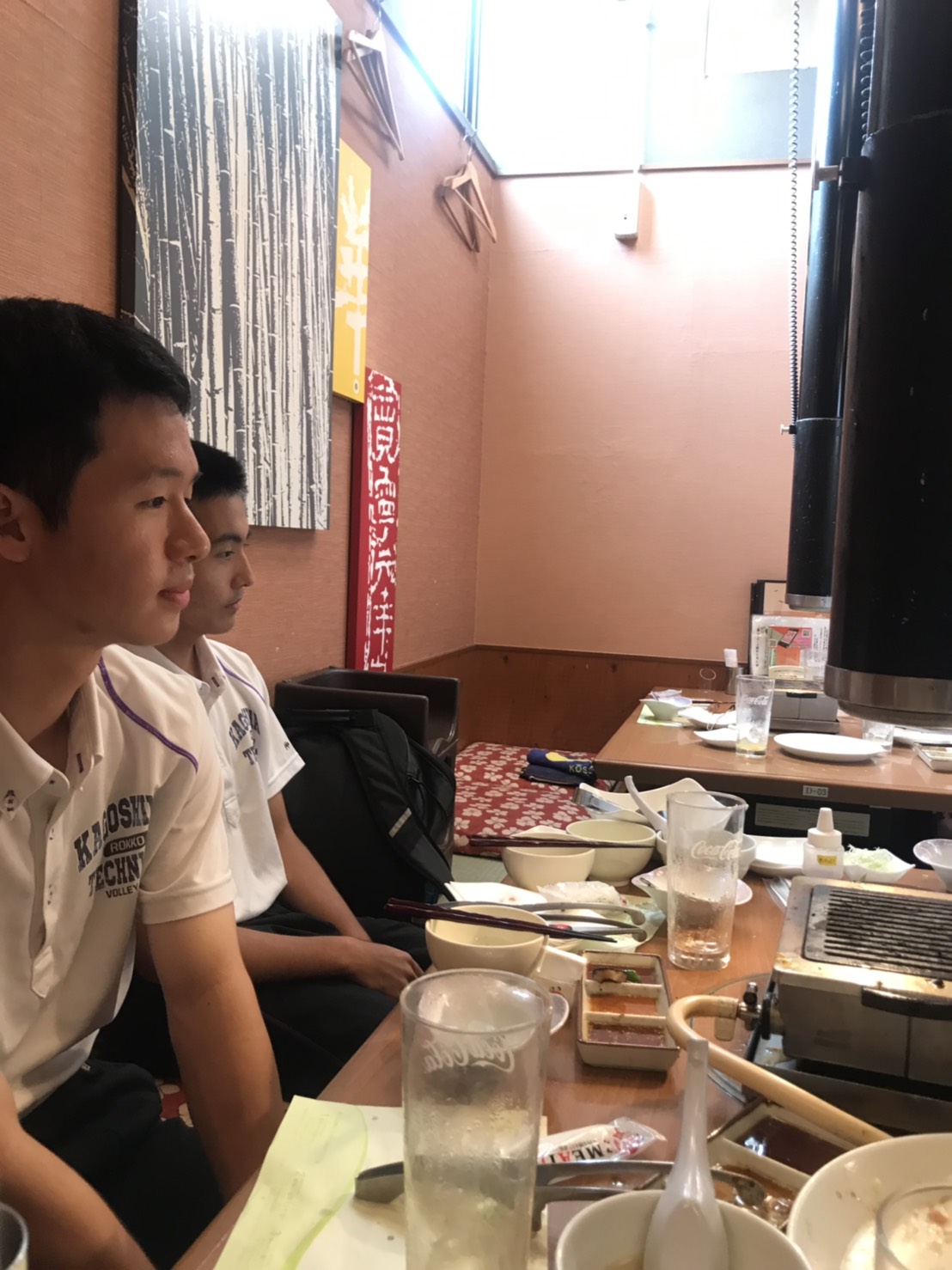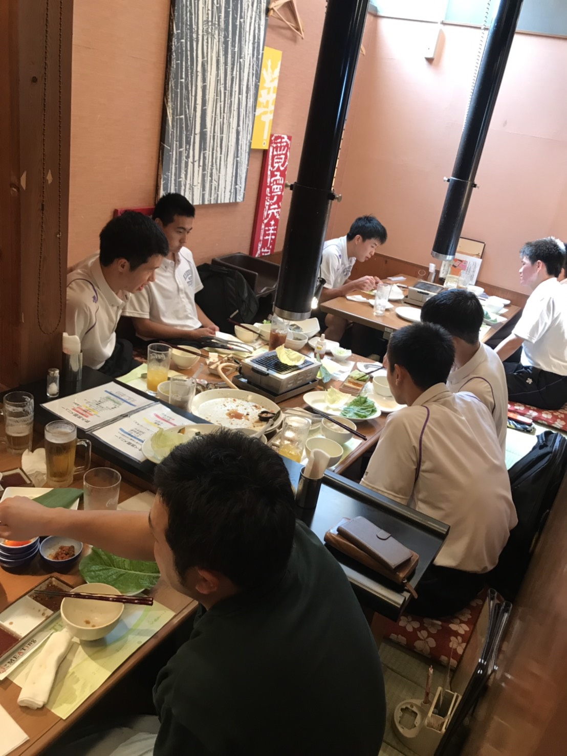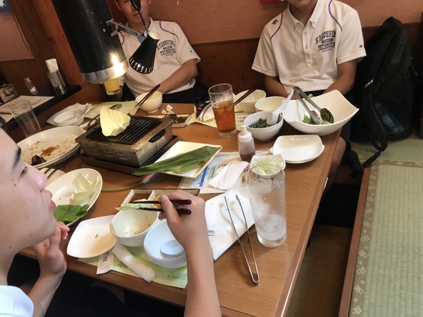 平成13年建築卒の原口大輔さんが、鹿工バレーボール部の寮生を焼肉に連れて行ってくれました。原口君も高校時代は寮生活経験者で、バレー部の同級生で屋久島出身の日高君のお父様が鹿児島に上がって来られた時にいつも焼肉のなべしまに連れていってもらったそうで、その時の嬉しかった思い出が印象的だったそうです。現在自分で店を経営されており、いつかは恩返しをしたいと思っていたそうです。出来たら定期的にその様な事ができ、それが、子供たちの力になって貰えたら嬉しく思います、とのことでした。